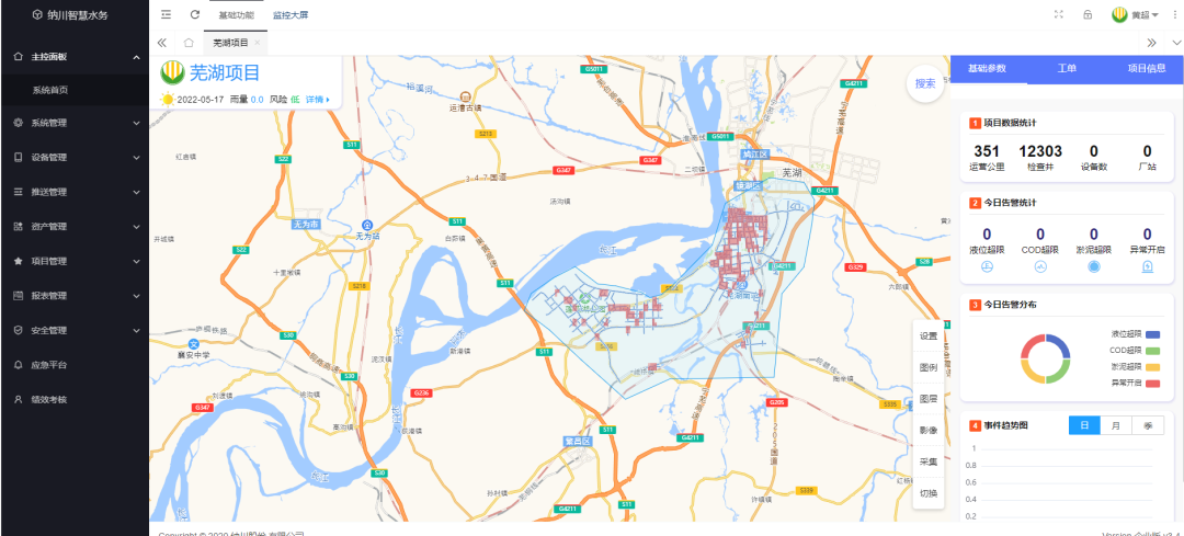 安徽蕪湖是推進(jìn)長江大保護(hù)工作的重要站點(diǎn),納川水務(wù)高度重視蕪湖項(xiàng)目運(yùn)維工作,組織20余名專業(yè)管網(wǎng)養(yǎng)護(hù)人員長期扎根蕪湖,配備了多臺(tái)專業(yè)車輛、設(shè)備,依托納川智慧水務(wù)平臺(tái)進(jìn)行智能化、精細(xì)化管理。
